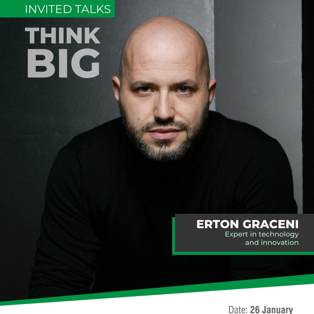 The guest speaker for this event is Mr. Erton Graceni, an expert in Technology and Innovation with over 12 years of professional experience.