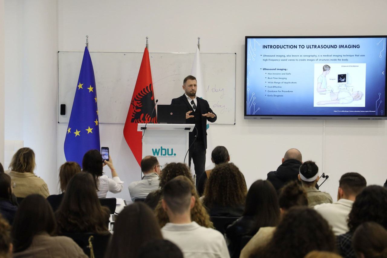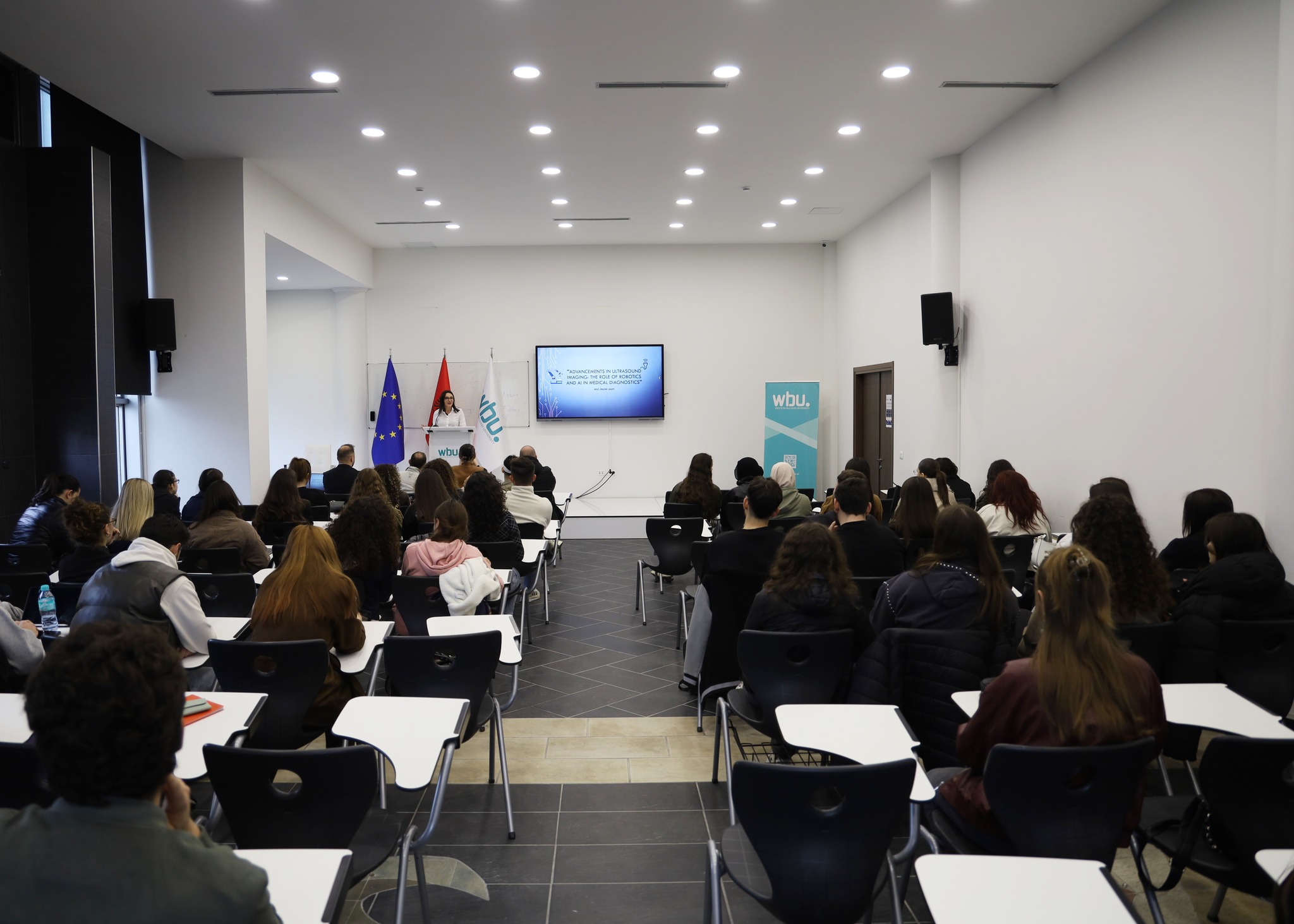 Western Balkans University hosted an engaging open lecture with MSc. Enxhi Japupi, Robotics Engineer at MONTAL sh.p.k., who shared valuable insights on the growing impact of robotics and artificial intelligence in medical diagnosis.