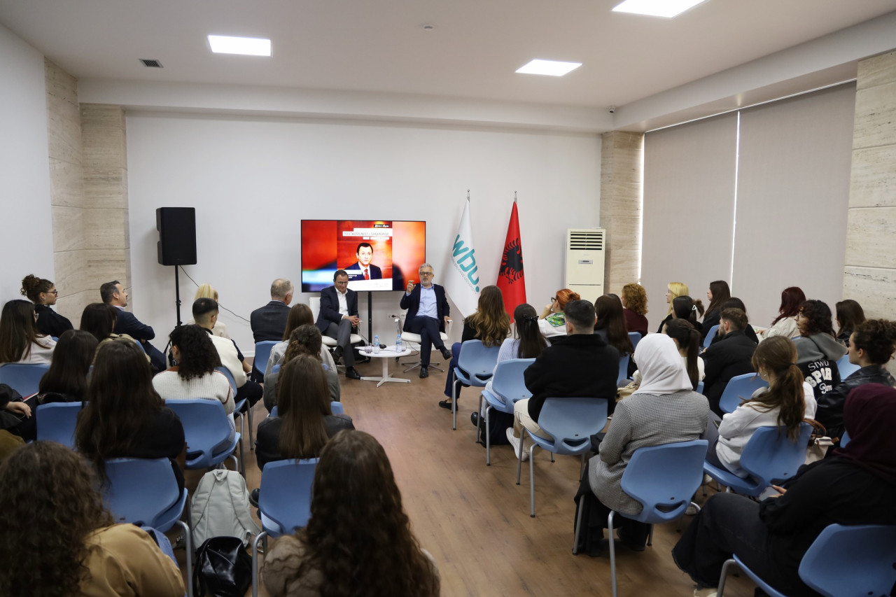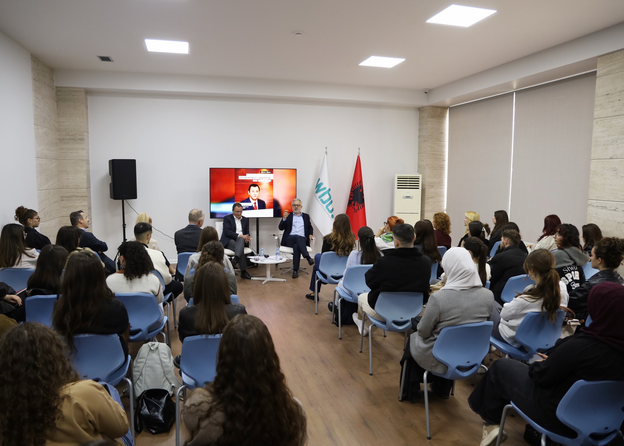 The Leadership Club at Western Balkans University organized an engaging academic activity featuring Mr. Genc Ruli, former Minister of Economy, moderated by Mr. Neritan Sejamini.