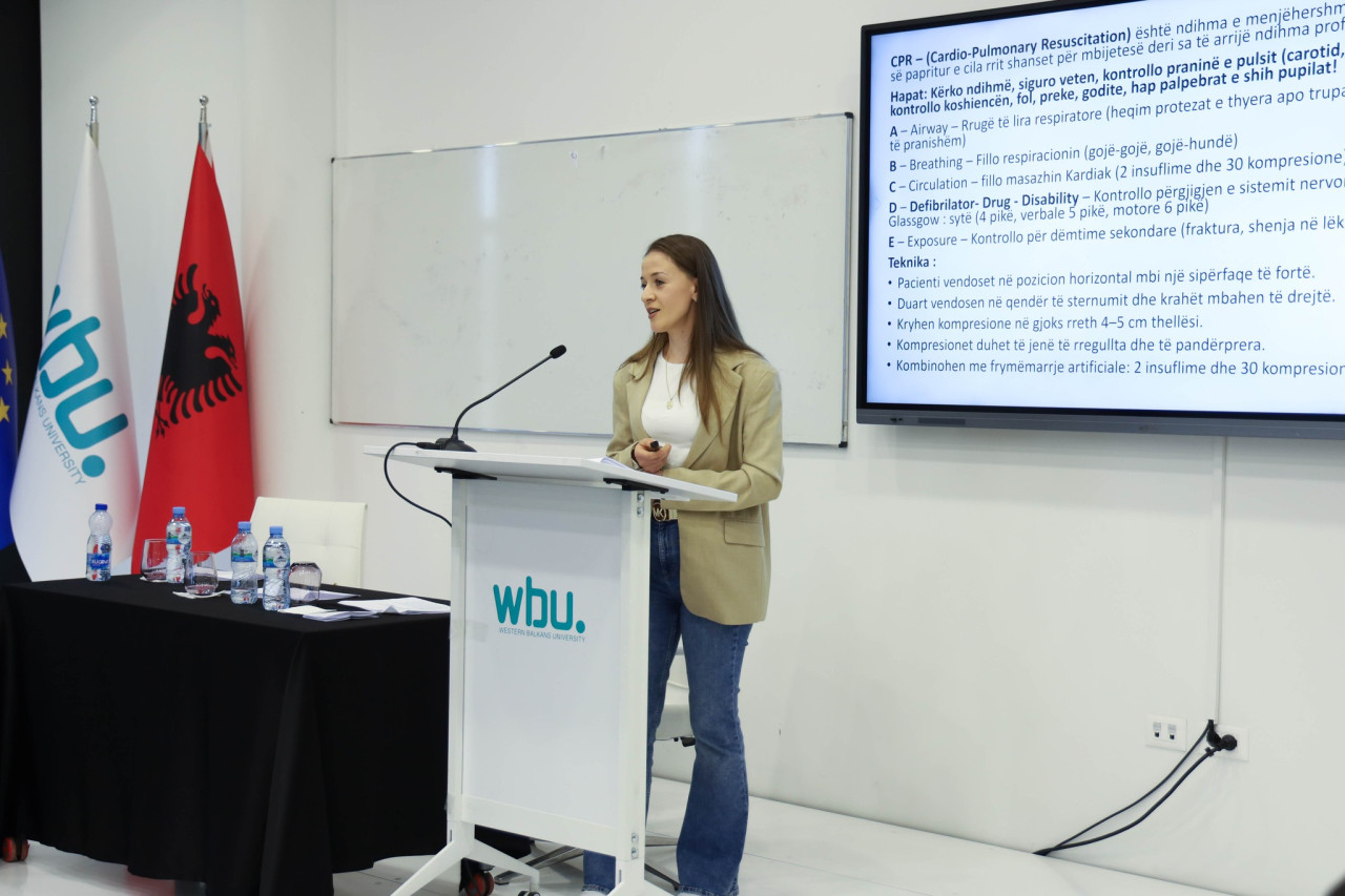 The event brought together Nursing students from Western Balkans University, “Ismail Qemali” University of Vlora, and “Luigj Gurakuqi” University of Shkodra, who presented projects and shared ideas on current issues affecting community health, emphasizing the role of nurses in health promotion and education.