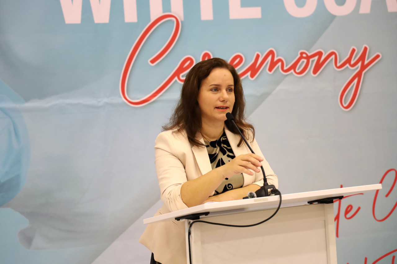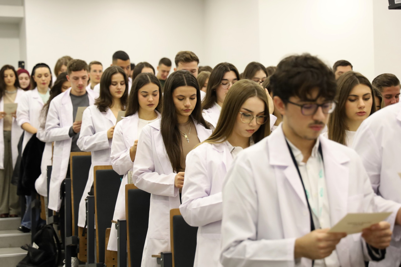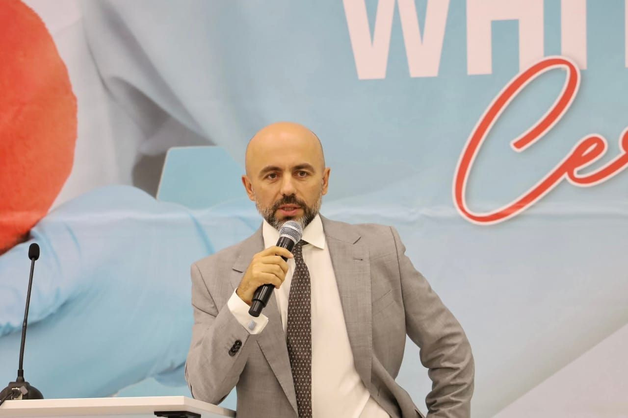 Prof. Dr. Ferdinand Gjana emphasized that wearing the white coat means wearing responsibility — the responsibility to heal, to serve, and to lead with integrity.