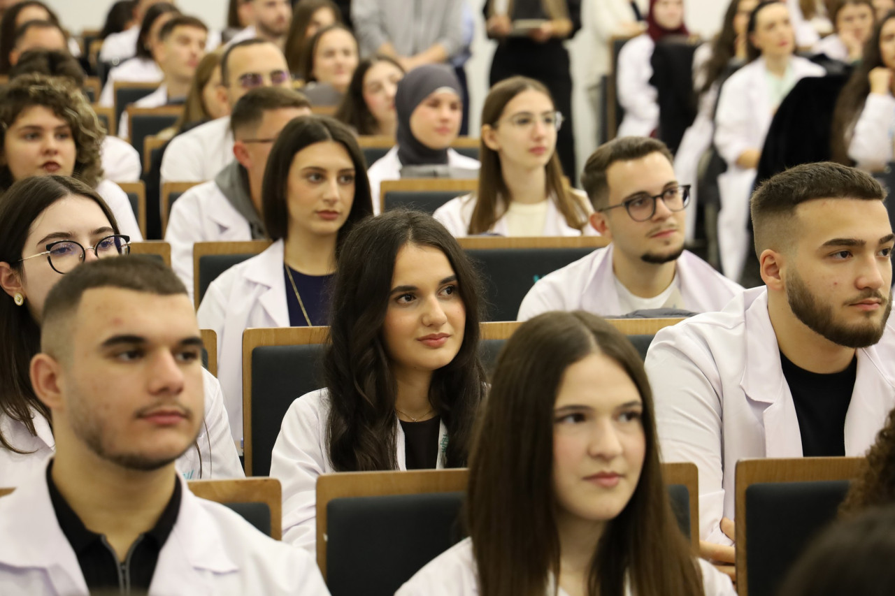 Prof. Assoc. Dr. Albana Halili highlighted that today marks the beginning of a lifelong journey where knowledge, compassion, and dedication must always walk hand in hand.