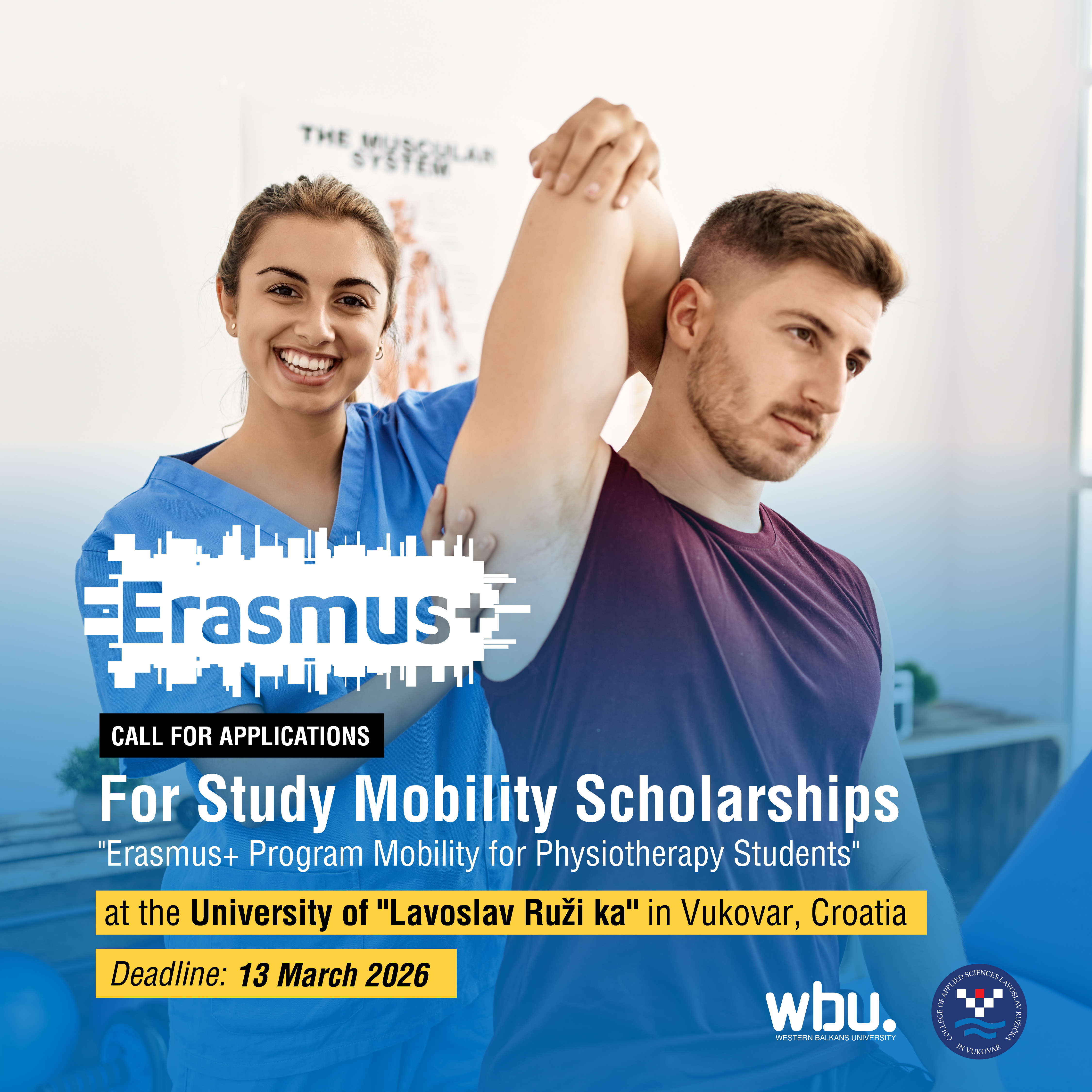 Western Balkans University announces the Second Call for Applications for Erasmus+ KA171 student mobility (study/traineeship) at the University of Applied Sciences “Lavoslav Ružička” in Vukovar, Croatia, under project 2025-1-HR01-KA171-HED-000334903.