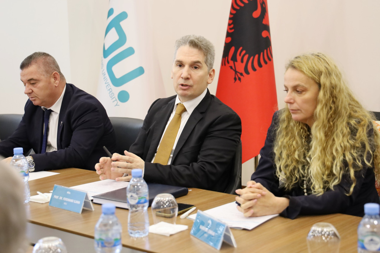 Visionary Leadership The event opened with remarks from Prof. Dr. Ferdinand Gjana, Rector of WBU, who underscored the institution's unwavering commitment to advancing healthcare standards. Prof. Gjana highlighted that the future of medicine lies in crucial interprofessional collaboration between physicians and pharmacists.